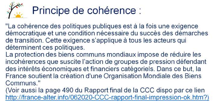 Dans un contexte, illustré tout aussi bien par la société Total que par les GAFA, d’entreprises dont les moyens d’actions et l’impact mondial sont bien supérieurs à ceux de la plupart des États, il n’est plus tenable qu’ils relèvent de droits nationaux. Nous avons besoin qu’une véritable communauté mondiale s’institue et ne se réduise plus comme aujourd’hui à une communauté inter-étatique, que les biens communs mondiaux fassent l’objet d’une gestion elle-même mondiale confiée à une agence effectivement capable d’interpeller les acteurs sur leurs obligations de résultat et que soit inventée à l’échelle mondiale une démarche délibérative citoyenne qui reflète les points de vue des différents types d’acteurs.